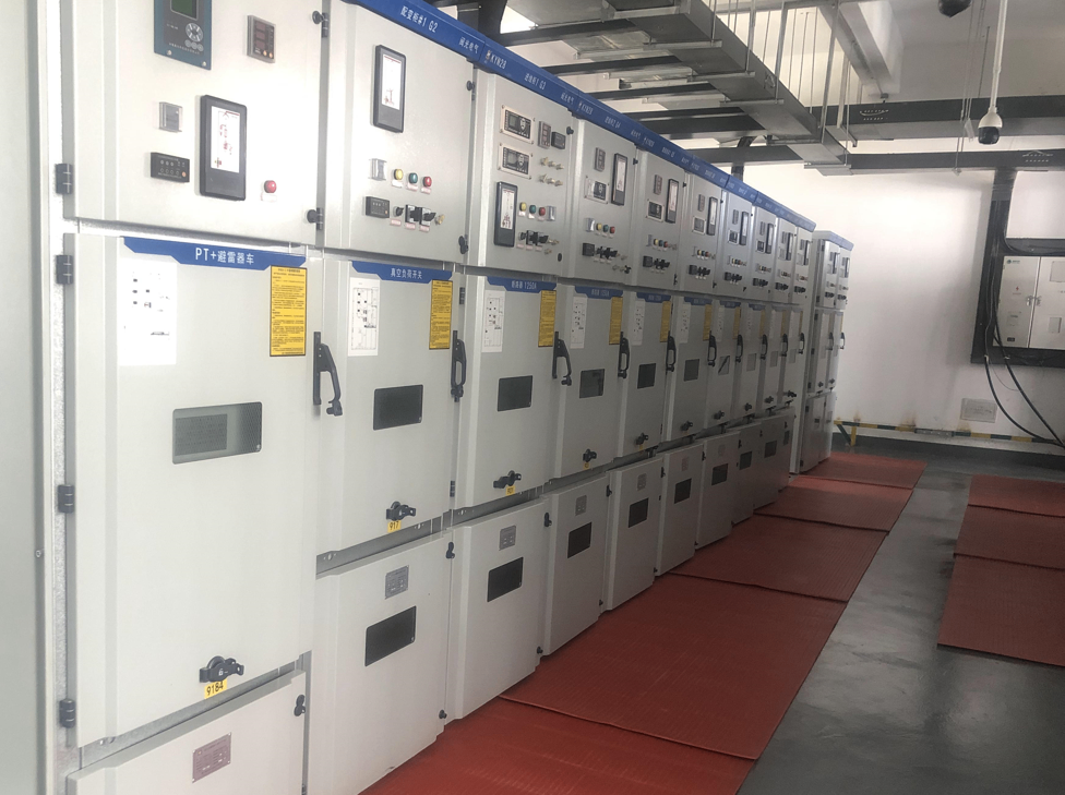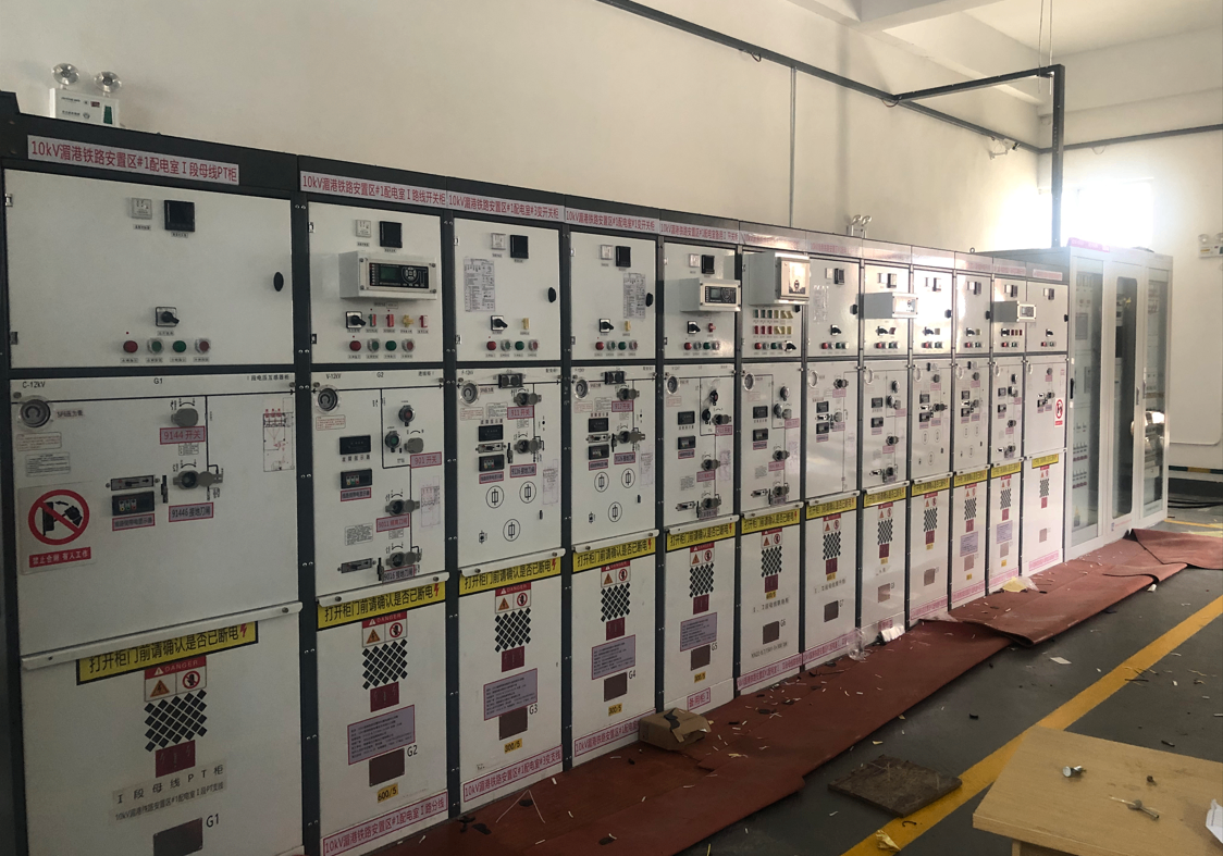 开闭所高压开关柜选用金属铠装移开式开关柜,高压进出线、联络开关选用真空开关,站用变出线开关选用负荷开关及熔断器保护,操作电源采用DC220V,共安装20面高压柜,一面直流屏,一面远动屏,一面智能监控系统屏。