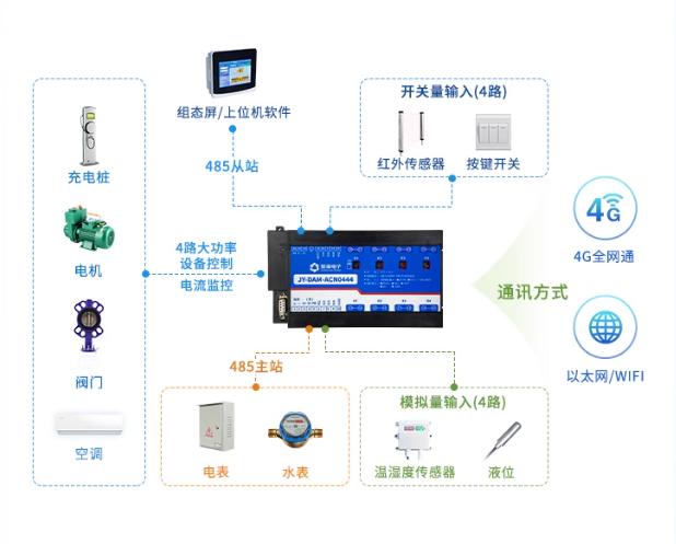 4、智能化控制:与智能配电监控模块等系统集成,可根据设备用电参数的变化,自动调整设备的运行状态,执行定时开关、传感器智能联动、手动开关联动控制、输出互锁电动控制、时段循环控制、时段间歇开关等操作,实现设备的智能化控制,提高设备运行效率和安全性;
