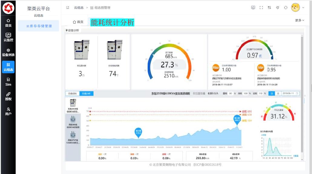 2、能耗管理:对工厂用电数据的分析,了解设备的能耗情况,包括电力消耗、能源利用率等指标,帮助管理人员优化设备运行参数,降低能耗,提高能源利用效率;